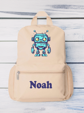 Introducing the perfect blend of charm and functionality: our personalised mini backpack featuring an adorable blue robot design. This compact backpack is ideal for toddlers and children, making it a delightful companion for nursery, preschool, school or daily adventures.