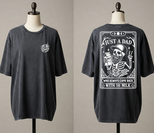 It features a subtle "Dad" print on the front left chest, while the back boldly displays a large print on the back – a tribute to the strength, love, and undeniable spirit of dads everywhere.